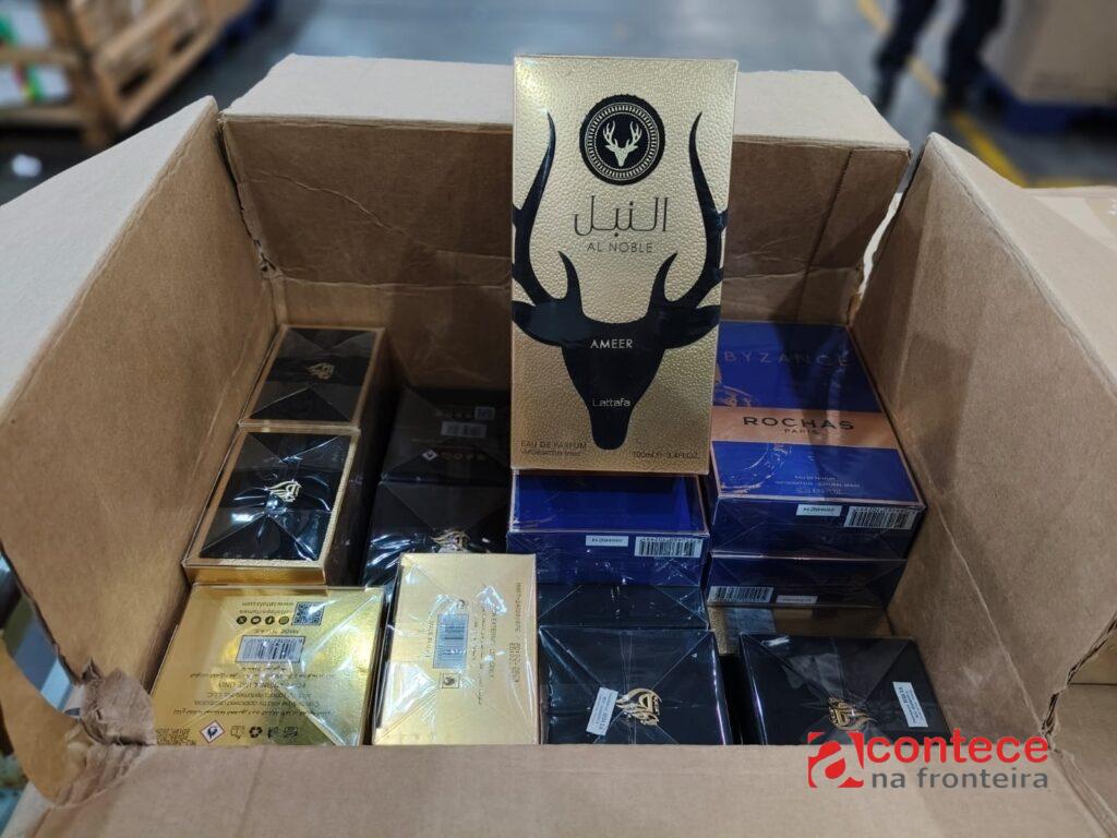 Dentre os volumes retidos destaque para aqueles que continham smartphones, tablets, impressoras e robôs-aspiradores de procedência chinesa, vinhos da Argentina, cartuchos de impressão, vestuário com falsificação de marcas, cigarros eletrônicos e perfumes árabes.