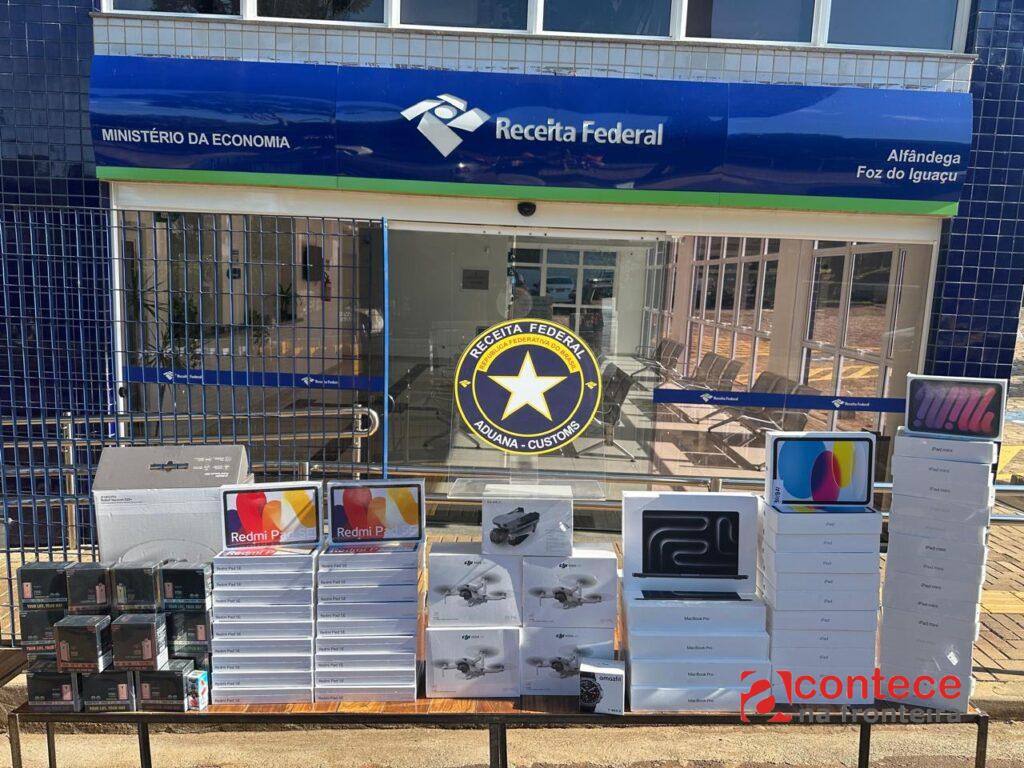 Já na manhã desta quinta-feira (16/01), no posto da Polícia Rodoviária Federal em Santa Terezinha de Itaipu – PR, um carro conduzido por um homem brasileiro também foi parado para fiscalização. Durante verificação, foram encontrados diversos eletrônicos como tablets, computadores, drones e smartphones variados. O motorista informou que a carga seria levada para o município de Matelândia, ainda no oeste do Paraná. Para realizar este transporte, ele receberia 250 reais.