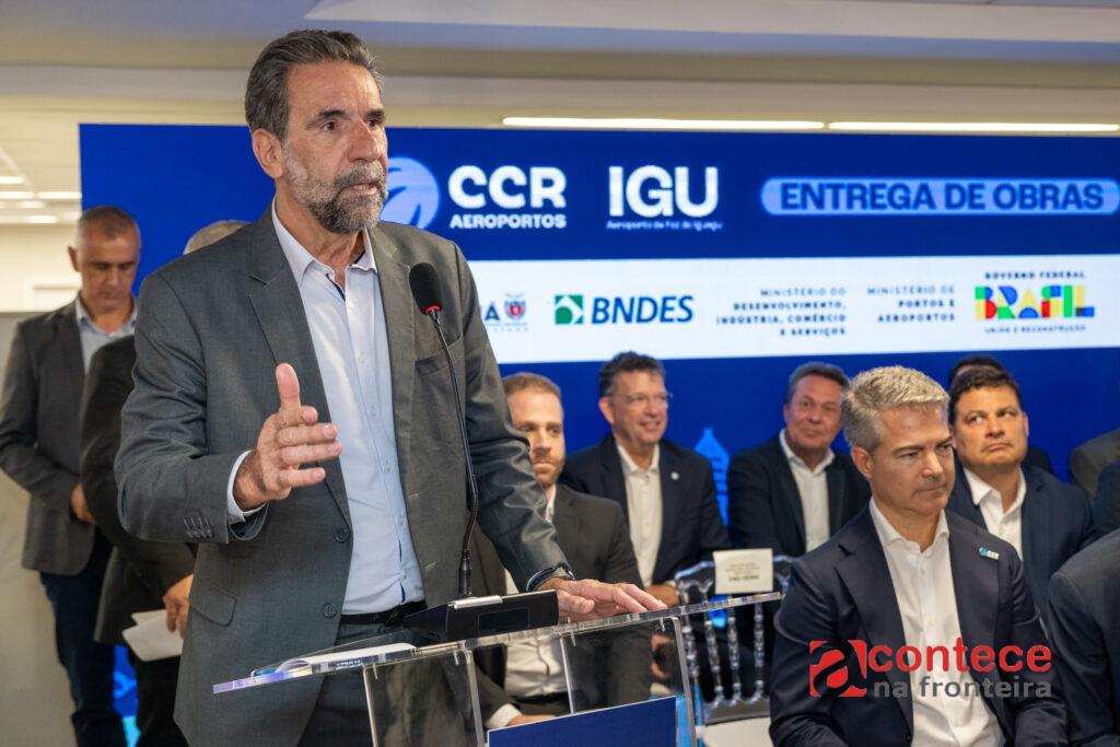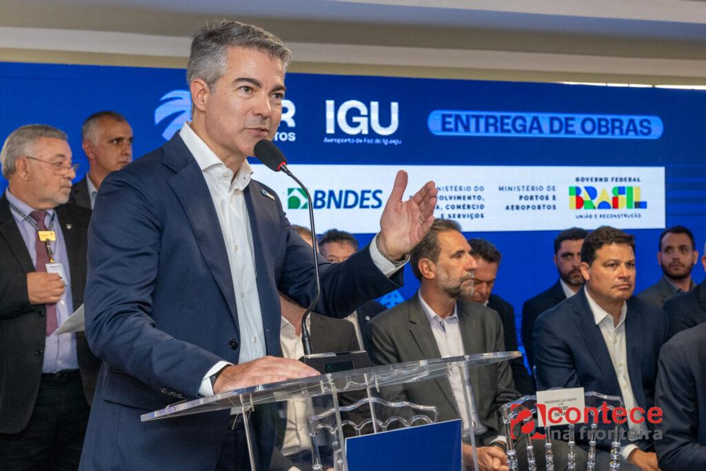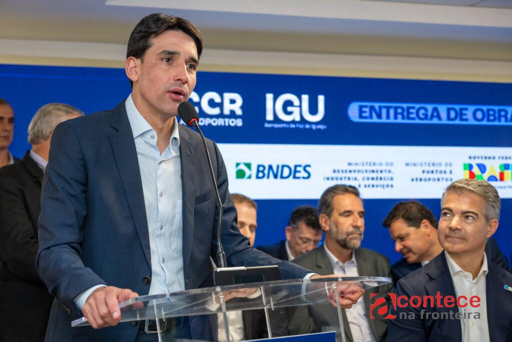 O ministro de Portos e Aeroportos, Silvio Serafim Costa Filho, participou da cerimônia de entrega das obras de ampliação e modernização do Aeroporto Internacional de Foz do Iguaçu, nesta terça-feira (21). Na ocasião, ele comentou sobre a expectativa de fortalecimento do turismo internacional na cidade, após a reforma de R$ 396 milhões que duplicou a capacidade do aeroporto de 2 milhões para 4 milhões de passageiros ao ano.