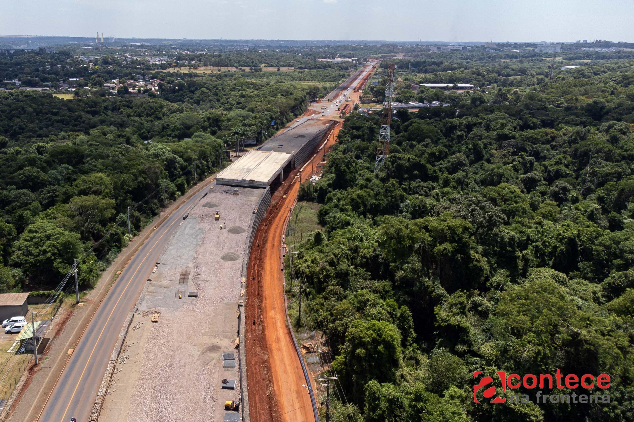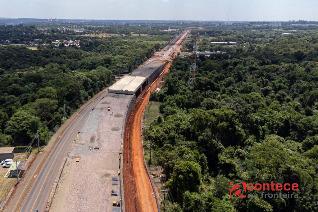O Departamento de Estradas de Rodagem do Paraná (DER/PR), autarquia da Secretaria de Infraestrutura e Logística (SEIL), informa que chegou a 56% a execução da obra da Perimetral Leste de Foz do Iguaçu, rodovia que vai ligar a BR-277 à nova Ponte da Integração Brasil – Paraguai. A obra é resultado da parceria entre o Governo do Paraná, governo federal e a Itaipu Binacional.