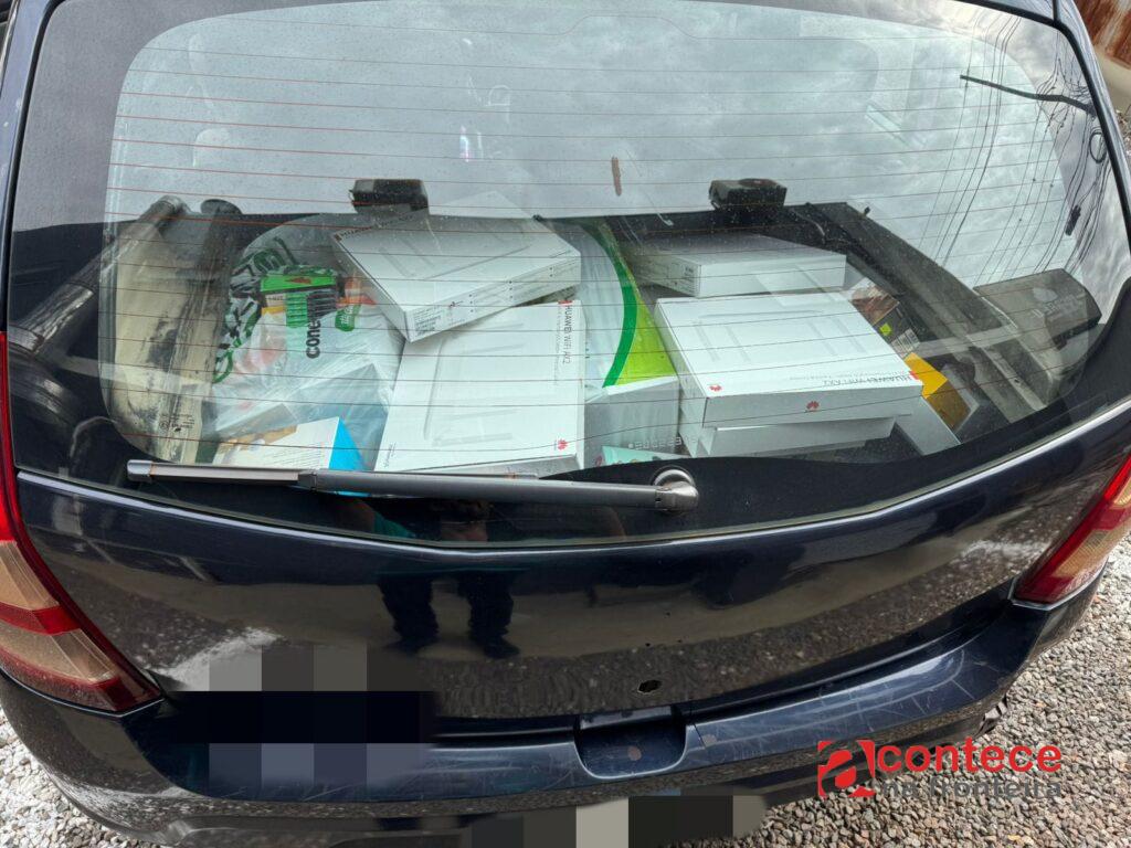 Toda carga de mercadorias do quarto do hotel e veículos foram levados para o pátio da Receita Federal em Maringá. O Renault Sandero precisou ser guinchado.