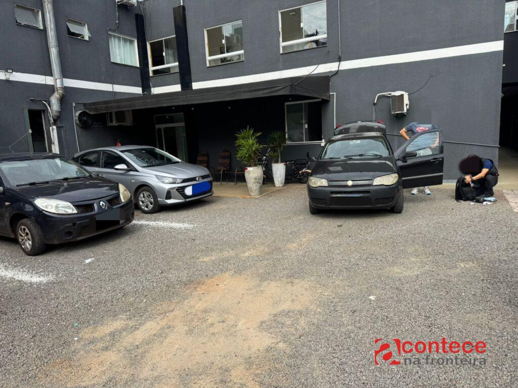 Os veículos foram localizados na cidade e após acompanhamento tático, um Renault Sandero e um Fiat Siena, ambos com placas do Paraná, adentraram em um estacionamento de um hotel no centro de Maringá. O motorista do Sandero evadiu-se do local ao perceber a presença da fiscalização.