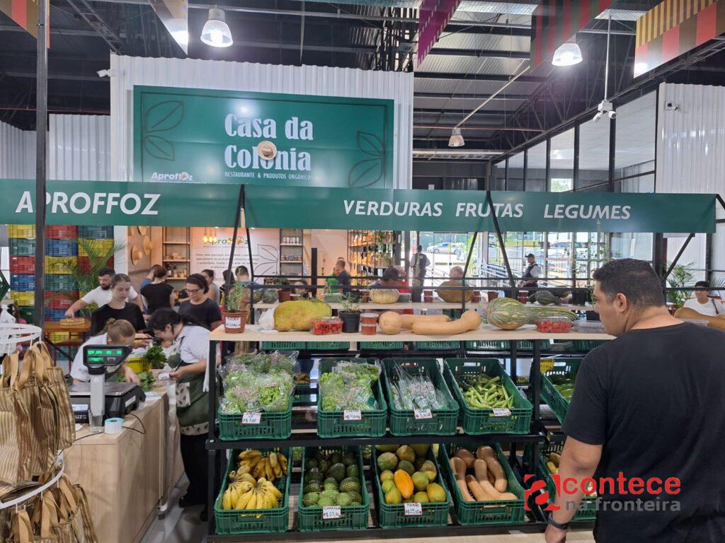 Desde sábado (15), moradores(as) e turistas de Foz do Iguaçu encontram novas opções de compra e lazer no Mercado Público Barrageiro. Entre elas, um box com frutas, verduras e legumes, e a Casa da Colônia, um restaurante com comida caseira, onde todas as tardes é servido um café colonial. Ambos da Associação dos Produtores Rurais Familiar de Foz (Aproffoz).