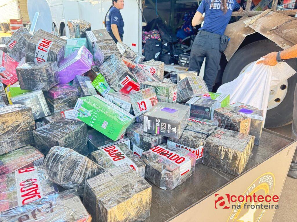 A abordagem aconteceu no último sábado (22), quando cerca de meio milhão de reais em mercadorias ilícitas foram apreendidas em um fundo falso de um ônibus de turismo, na Aduana da Ponte Internacional da Amizade. O motorista inicialmente informou que o destino da viagem era a cidade de Não Me Toque, no Rio Grande do Sul.