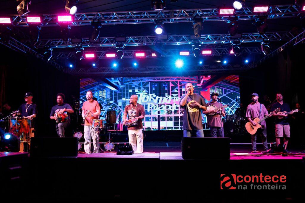 O grupo paulista “Turma do Pagode” foi a principal atração da noite; artistas de Foz do Iguaçu também brilham na programação da folia