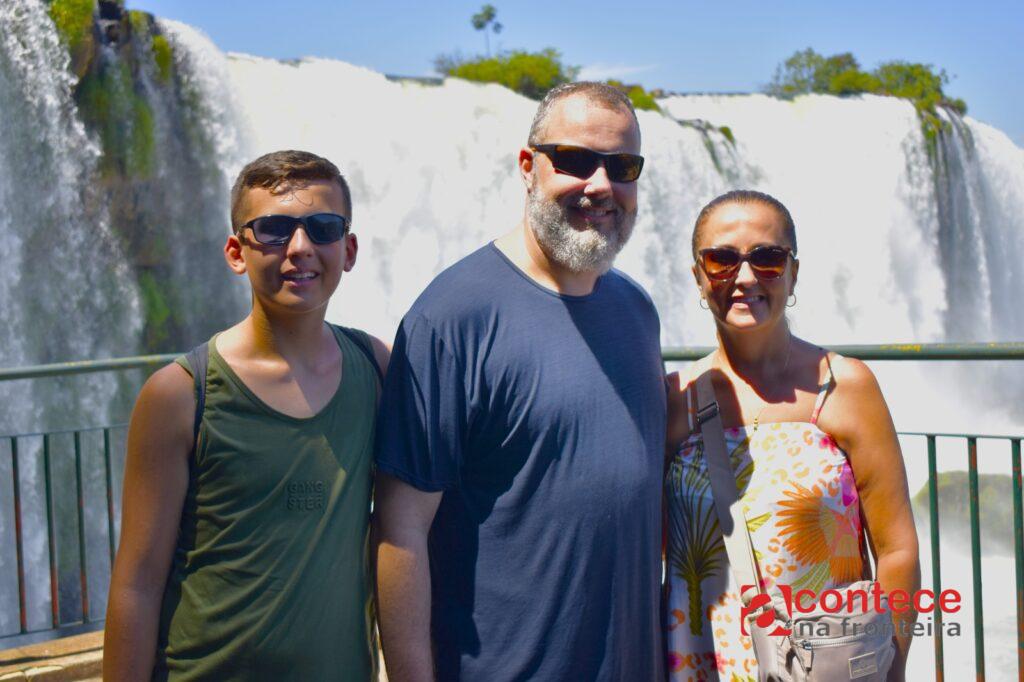 Visitantes assíduos – “Somos fãs, visitamos as Cataratas com frequência. O banho que levamos da água que vem das quedas nos revigora para o ano. A paisagem é linda, a estrutura é boa. Eu já fiz o passeio de barco também, vale a pena, são vários atrativos para toda família”, realçou Luiz Zanoto, que estava acompanhado da esposa, Ângela, e do filho, Davi. Eles visitaram o parque pela terceira vez. Os três vieram de Balneário Gaviota, saindo do litoral de Santa Catarina, que fica movimentado durante o recesso.
