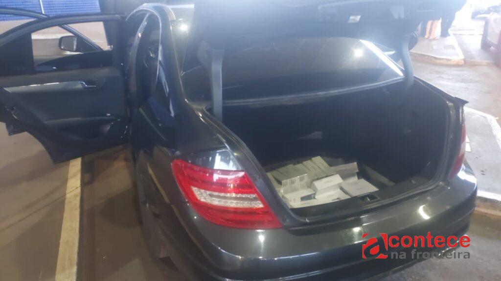 Logo após essa apreensão, outra abordagem foi realizada em um veículo conduzido por um cidadão de nacionalidade paraguaia. Durante a fiscalização, foram encontrados 46 MacBooks e 376 celulares que estavam sendo trazidos de forma irregular para o Brasil. Os aparelhos estavam no porta-malas e também no assoalho do veículo, escondidos nos tapetes do carro. A carga está avaliada em R$ 610 mil.