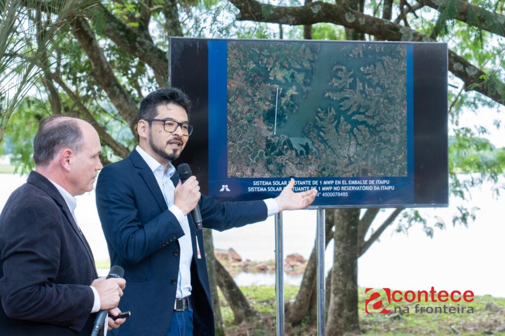 A apresentação técnica do projeto foi feita pelo chefe da Assessoria de Energias Renováveis do lado paraguaio da Itaipu, Pedro Domaniczky, e pelo engenheiro Márcio Massakiti, da Assessoria de Energias Renováveis do lado brasileiro. De acordo com Massakiti, uma das vantagens do sistema flutuante é evitar o corte de árvores ou ocupação de terras férteis para instalação de uma usina solar.
