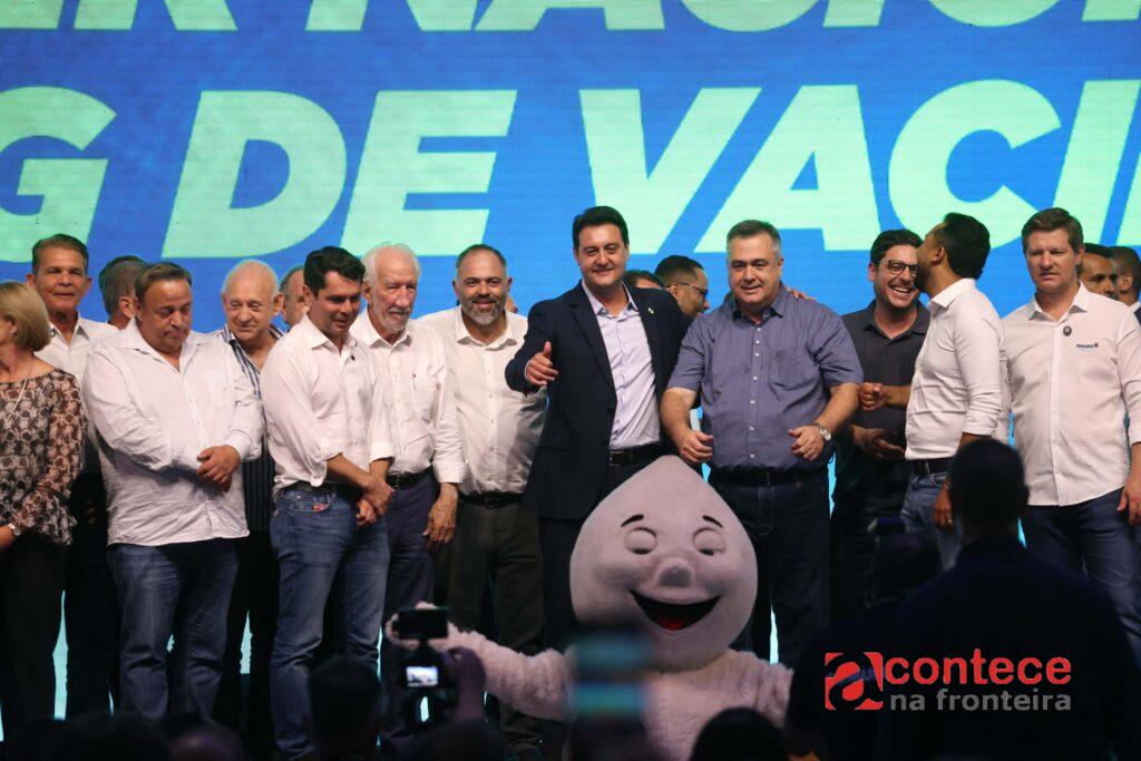 PRESENÇAS – Participaram do anúncio o vice-governador Darci Piana; os secretários estaduais João Carlos Ortega (Casa Civil), Guto Silva (Planejamento), Santin Roveda (Justiça e Cidadania) e Marcio Nunes (Turismo); o subchefe da Casa Civil, Lúcio Mauro Tasso; o chefe da Casa Militar, coronel Marcos Tordoro; o presidente da Sanepar, Wilson Bley; o diretor-geral da Sesa, César Neves; o superintendente-Geral de Apoio aos Municípios, Júnior Weiller; os deputados estaduais Alexandre Curi, Ademar Traiano, Adão Litro, Alisson Wandscheer, Anibelli Neto, Artagão Júnior, Batatinha, Do Carmo, Hussein Bakri, Luís Corti, Matheus Vermelho, Márcia Huçulak, Marcio Pacheco, Nelson Justus, Soldado Adriano José; além de prefeitos, lideranças e gestores da área da saúde dos 399 municípios paranaenses.
