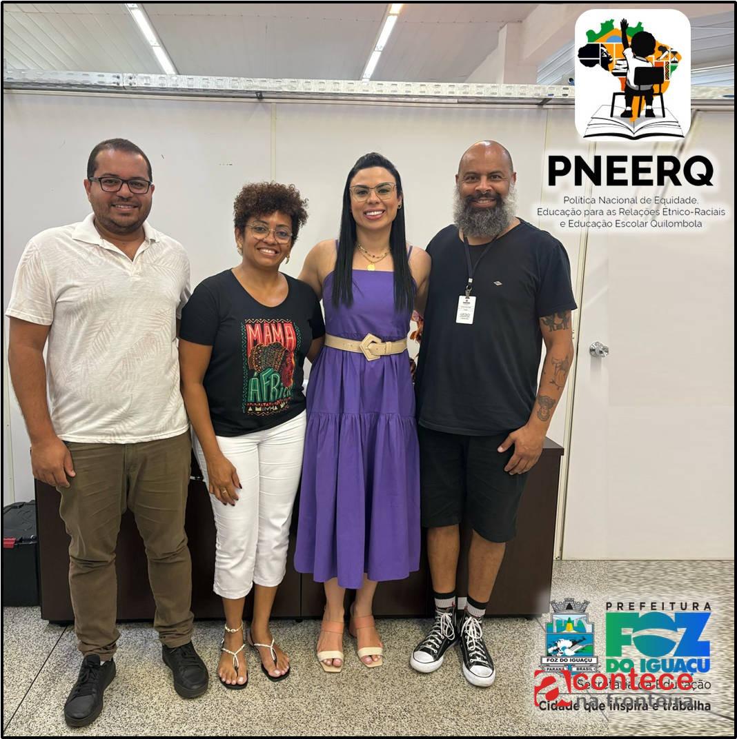 Participaram dos encontros a diretora de Educação Infantil, Ensino Fundamental e Educação Especial da Secretaria Municipal de Educação, professora Aline Bandeira, e o coordenador estadual da PNEERQ-PR e membro da equipe de educação para as relações étnico-raciais da Secretaria Estadual de Educação, Galindo Ramos.