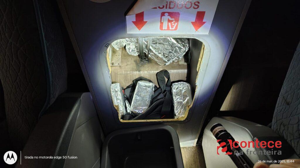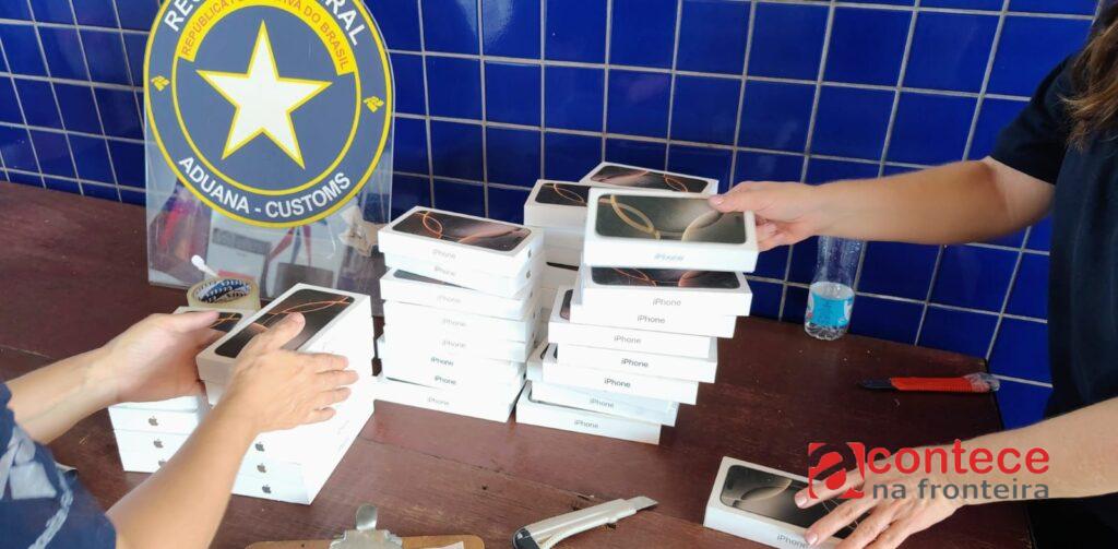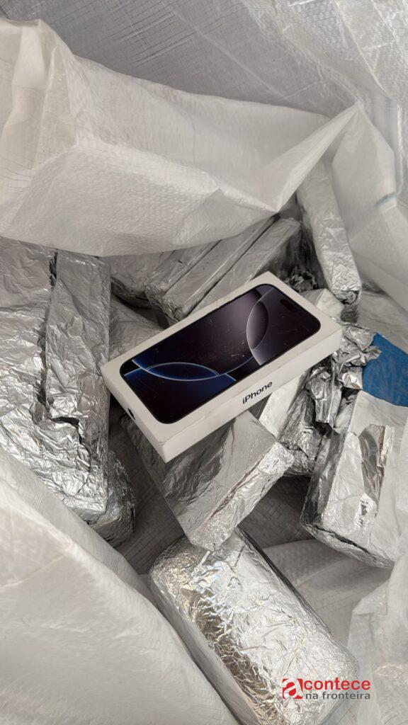 Na fiscalização inicial, servidores encontraram um grande volume de perfumaria e cabelo humano no bagageiro, o que já indicava crime de descaminho, caracterizado pela tentativa de burlar o pagamento de impostos sobre mercadorias importadas de forma irregular. Mas em uma vistoria mais detalhada, foram localizados dois fundos falsos. No primeiro, dentro do bebedouro do ônibus, estavam dezenas de iPhones 16 Pro Max, iPads Pro e celulares recondicionados. O segundo fundo falso foi encontrado no duto de ar da cabine do motorista com mais eletrônicos escondidos.