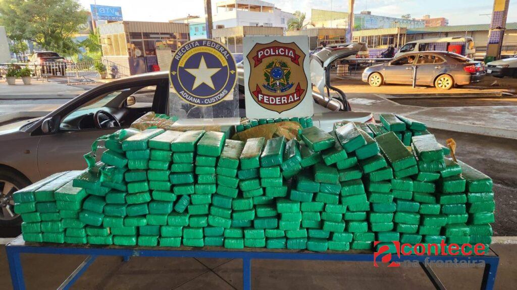 Em seguida, logo depois das 7h da manhã, servidores da Receita Federal realizaram a retenção de 354,60 quilogramas de substância análoga a maconha após tentativa de fuga do motorista. Ao notar que seria parado para fiscalização, tentou se evadir do local às pressas, mas foi impedido pelas forças de segurança que atuavam na Aduana e pela fila de carros próximo a guarita da Polícia Rodoviária Federal, antes de entrar na BR-277.
