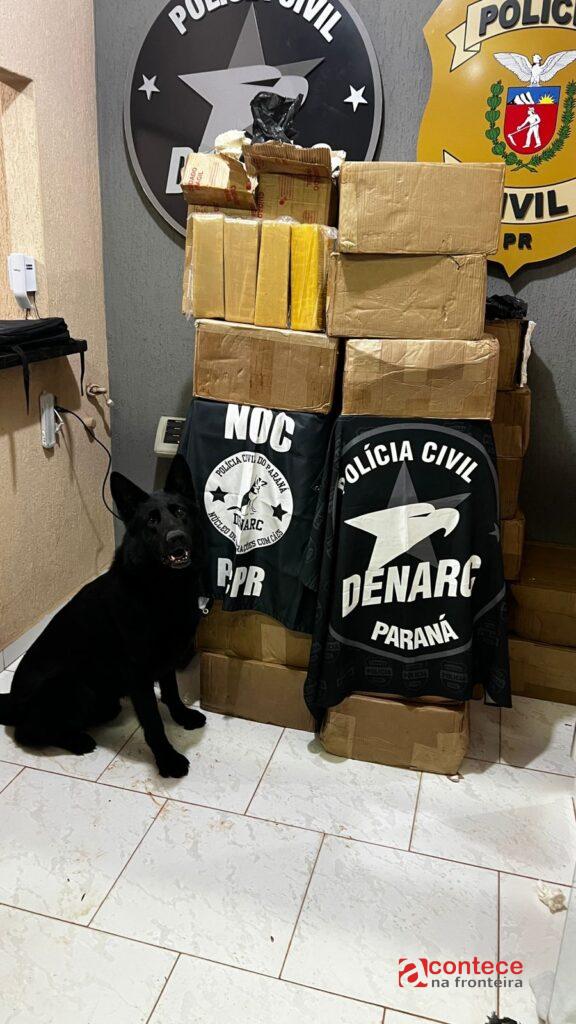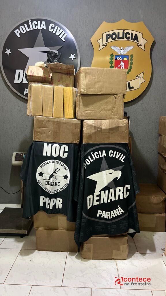 A Polícia Civil do Paraná (PCPR), por meio da Divisão Estadual de Narcóticos (Denarc), núcleo de Foz do Iguaçu, apreendeu 807 quilos de maconha na noite desta quarta-feira (28), em São Miguel do Iguaçu, na região Oeste do Estado. Um homem de 33 anos foi preso em flagrante por tráfico de drogas.