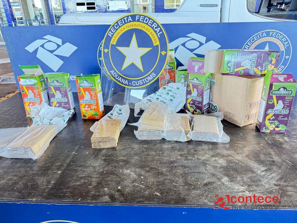 Droga foi encontrada em caixas sob o banco de um ônibus durante fiscalização na Ponte Internacional da Amizade