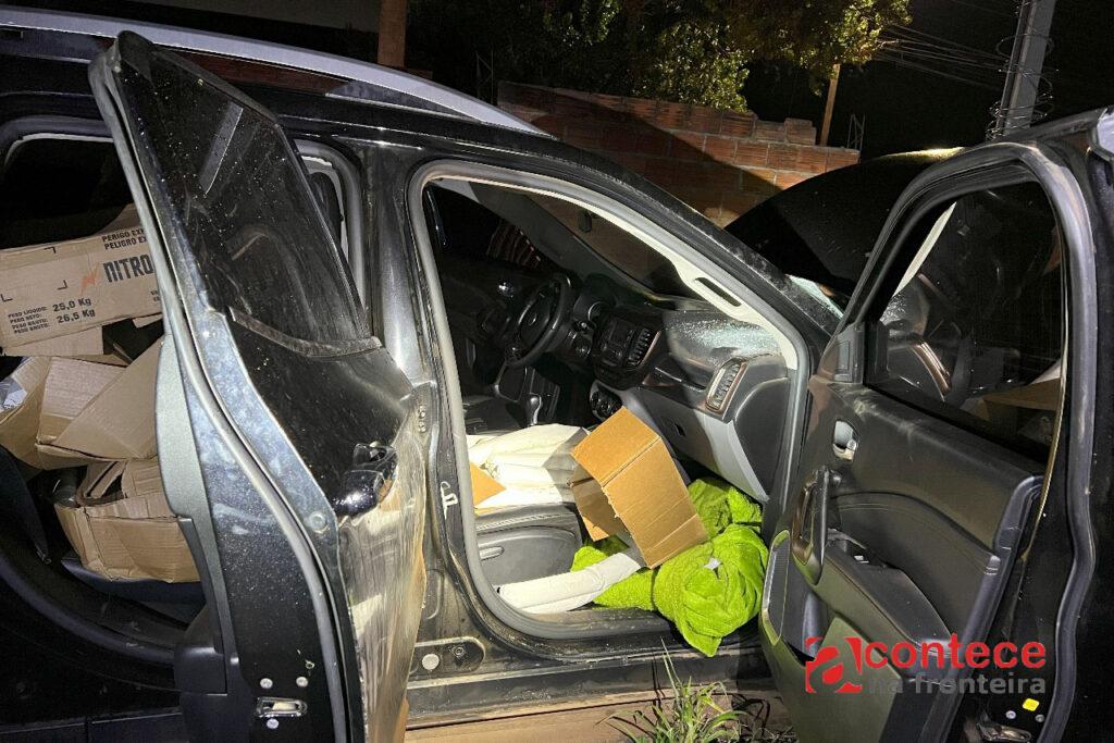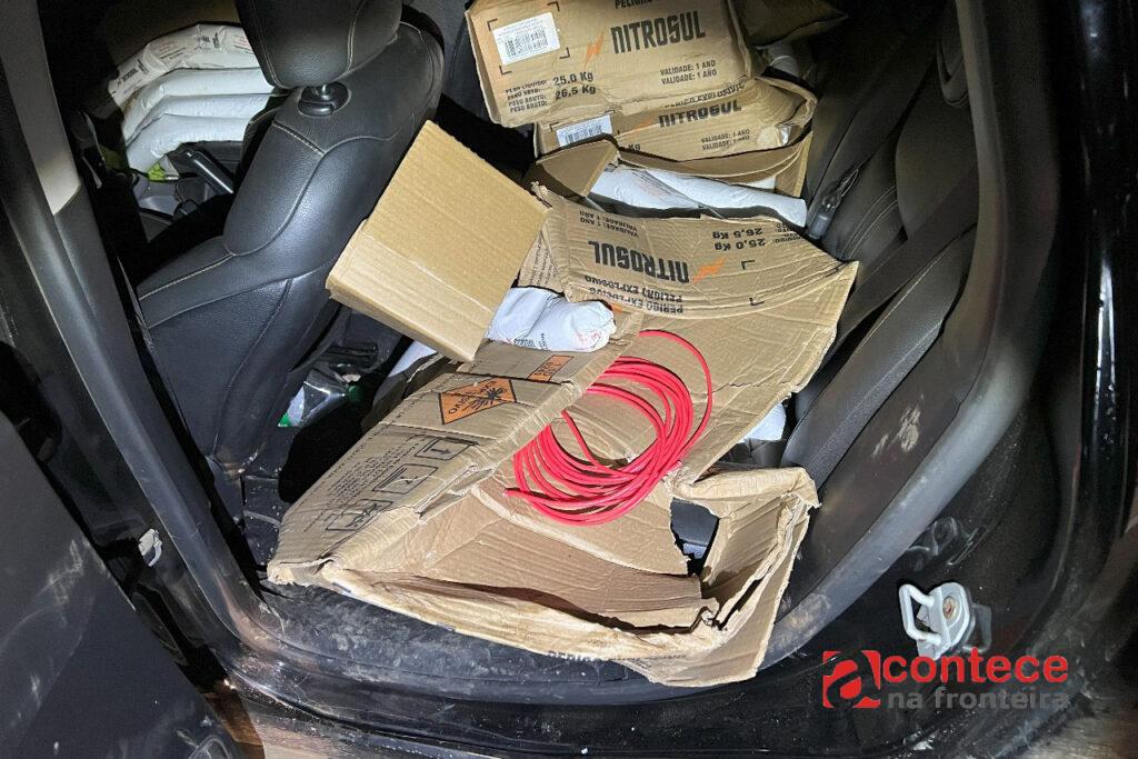 Uma equipe do 11º Batalhão identificou o automóvel suspeito no fim da manhã desta terça e, ao verificar a presença de artefatos explosivos, isolou a área e solicitou apoio da unidade especializada, que foi enviada de Curitiba por aeronave do Governo do Estado. Durante a inspeção, os policiais localizaram 132 unidades de emulsão encartuchada, um tipo de explosivo comercial e seis metros de cordel detonante.