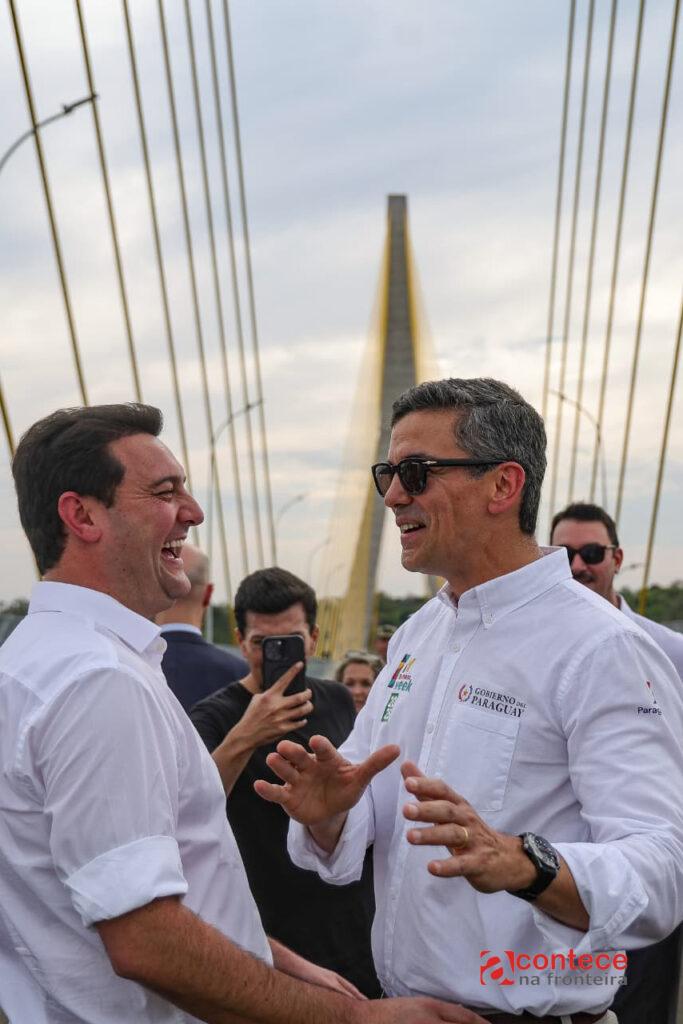 O acesso do lado paraguaio já foi concluído, inclusive a parte alfandegária. O governo está finalizando, porém, as obras de outra ponte que faz ligação ao interior do estado de Alto Paraná. “Para nós é muito importante o avanço da integração física entre as duas regiões. Brasil e Paraguai são países irmãos, Paraná e o departamento de Alto Paraná são estados irmãos e essa ponte, que foi sonhada por muitos anos, já é uma realidade e está muito perto de ser liberada”, afirmou Santiago Peña.