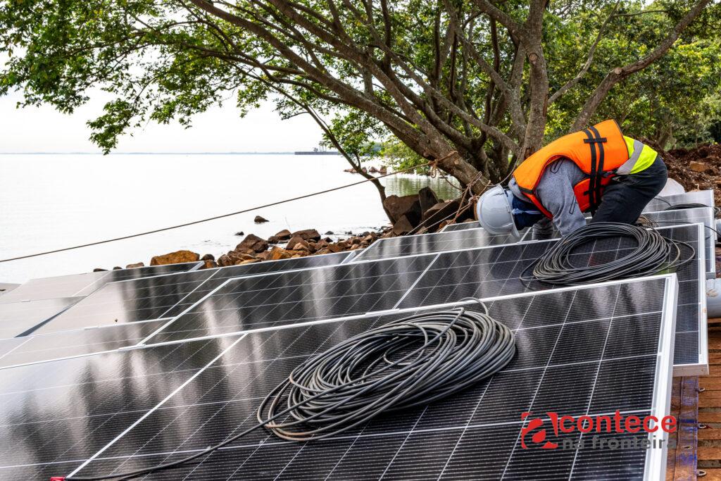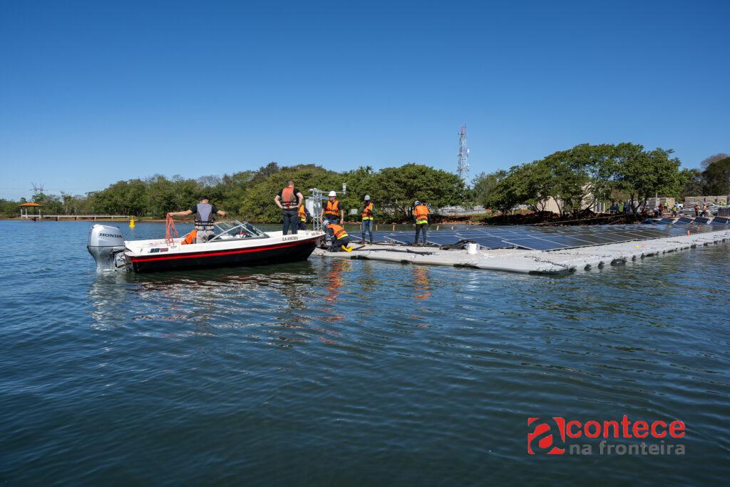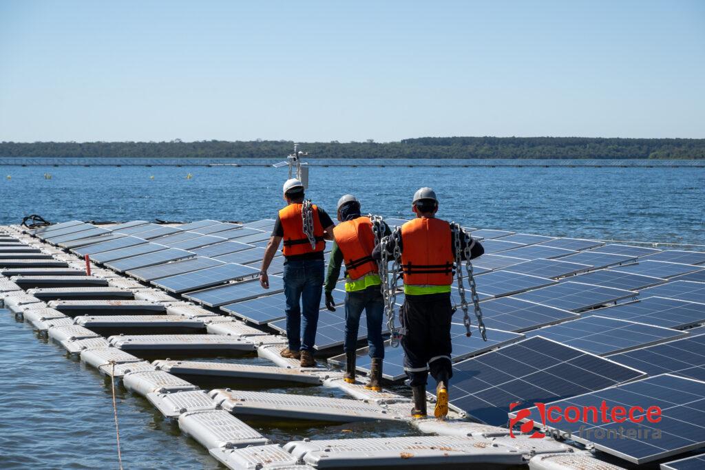 A Itaipu Binacional começou nesta semana a instalação do primeiro dos dez conjuntos de placas solares da futura usina solar flutuante experimental no reservatório da hidrelétrica. A previsão é que esta etapa de montagem da estrutura se estenda até o fim do mês e a usina esteja operando em sua capacidade plena ainda este ano. Toda a energia produzida será destinada para o consumo interno da própria Itaipu.