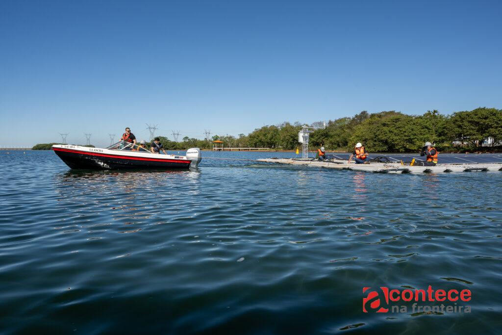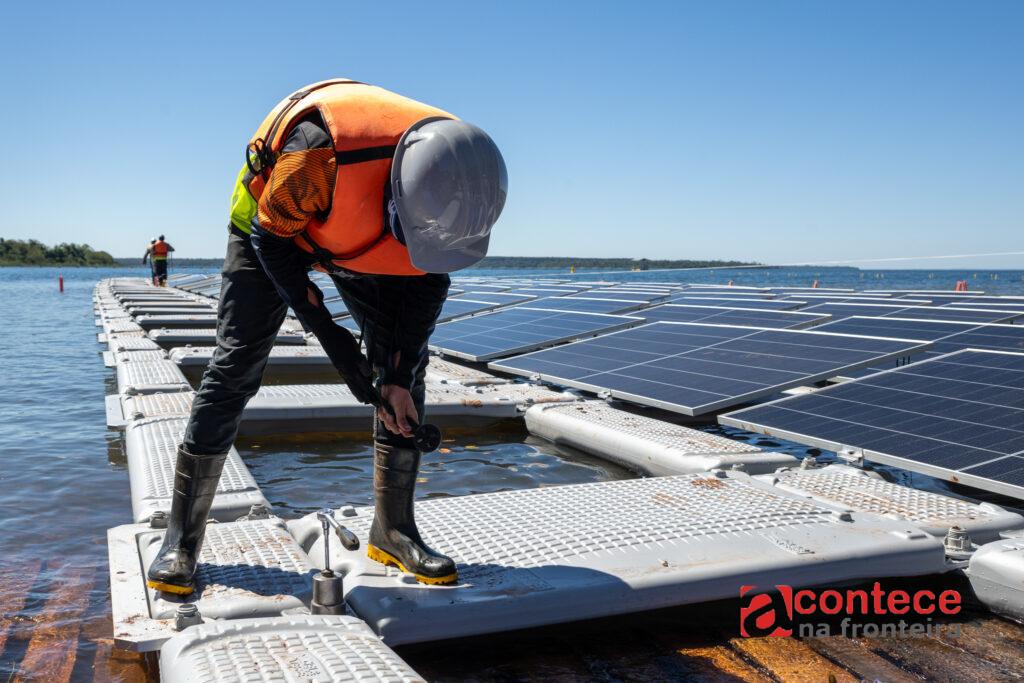 Primeiro conjunto de painéis fotovoltaicos foi colocado na água nesta semana; expectativa é que a usina comece a gerar energia ainda este ano