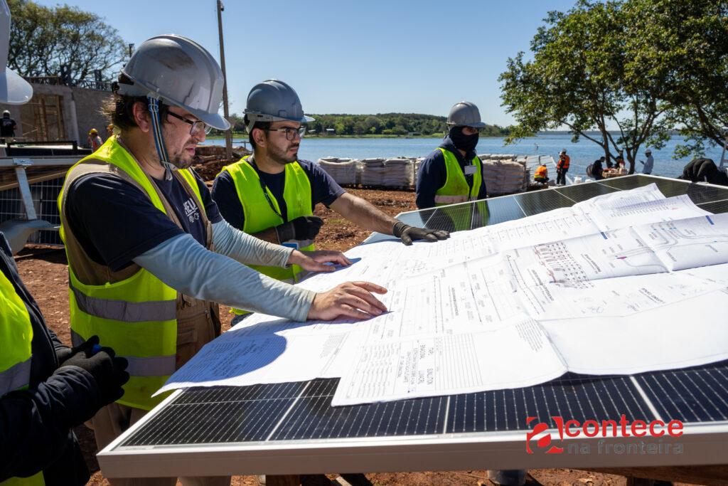 A usina está sendo implantada por um consórcio binacional formado pelas empresas Sunlution (Brasil) e Luxacril (Paraguai), vencedor do edital promovido por Itaipu com proposta de US$ 854,5 mil. O sistema ficará conectado à subestação da margem paraguaia, próximo do local onde a usina flutuante está sendo instalada. Os equipamentos têm certificações internacionais de qualidade, vida útil estimada de 30 anos e resistência a condições climáticas adversas.