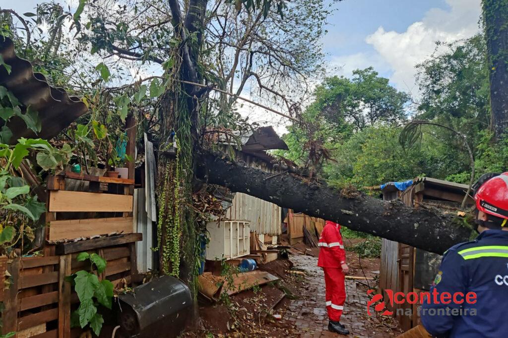 As fortes chuvas acompanhadas de ventos intensos que atingiram o Paraná no fim de semana e nesta segunda-feira (22) provocaram estragos em diversas regiões do Estado. De acordo com o Corpo de Bombeiros Militar do Paraná (CBMPR), as ocorrências envolveram desde quedas de árvores até destelhamentos e desalojamento de famílias.