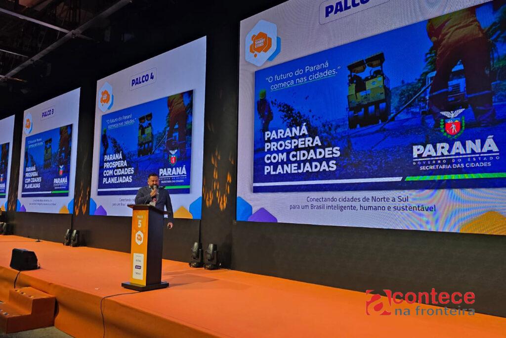 Na cerimônia de abertura, o diretor de Apoio aos Municípios do Governo do Paraná, Valdomiro Hrysay, da Secretaria de Estado das Cidades (Secid), compartilhou experiências e soluções do Paraná. Ele citou, entre os exemplos, o Asfalto Novo, Vida Nova, que prevê investimento de R$ 4,5 bilhões em pavimentação urbana, e apoio aos municípios para implementação de sistemas de iluminação com LED.