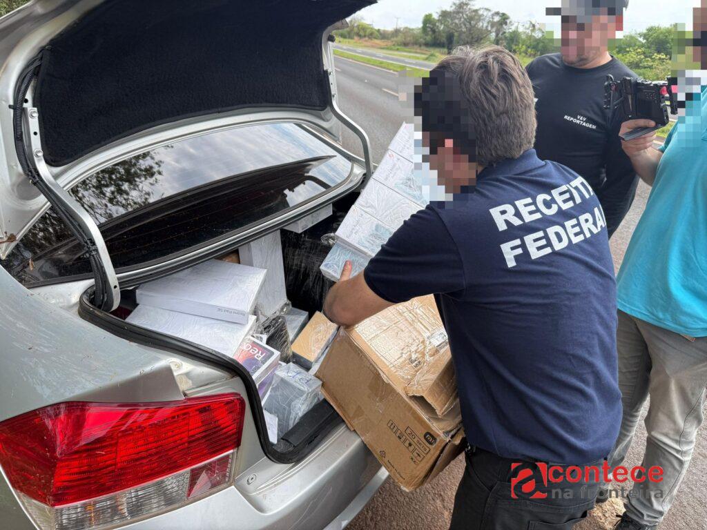 De imediato, a equipe da Receita Federal iniciou acompanhamento tático. O condutor realizou diversas manobras perigosas, perdeu o controle da direção e capotou às margens da rodovia. O carro ficou de cabeça para baixo, sobre um córrego, mas o motorista sofreu apenas contusões leves e recebeu atendimento médico de emergência no local. Dentro do automóvel, destruído pelo acidente, foram encontrados aproximadamente R$ 200 mil em smartphones, que permaneceram intactos.