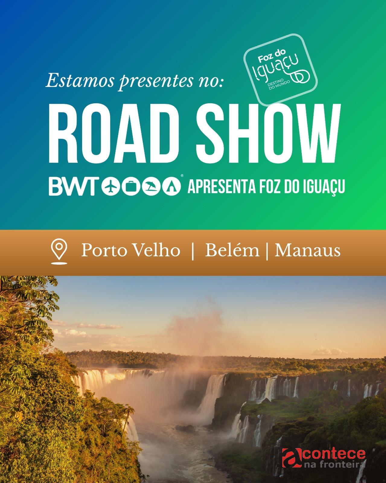 A Secretaria de Turismo de Foz do Iguaçu participa da segunda etapa do Road Show – BWT Apresenta Foz do Iguaçu, entre os dias 29 de setembro e 3 de outubro. O evento, organizado pela BWT Turismo, operadora paranaense, acontece nas cidades de Porto Velho (RO), Belém (PA) e Manaus (AM), com o objetivo de aproximar o destino dos agentes de viagens nortistas, bem como aumentar o fluxo de visitantes vindos da região.