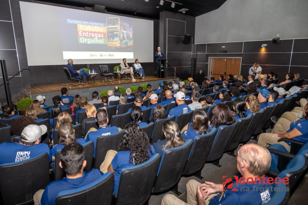 Um pedido de décadas do setor cultural de Foz do Iguaçu vai ser atendido em breve com a construção de um teatro no futuro Centro de Recepção dos Visitantes (CRV) da Itaipu Binacional, cujas obras devem iniciar em 2026. O anúncio foi feito pelo diretor-geral brasileiro da Itaipu, Enio Verri, em uma solenidade nesta segunda-feira (29), no auditório do atual CRV. Durante a cerimônia alusiva ao Dia Mundial do Turismo, celebrado no dia 27 de setembro, foram anunciados R$ 150 milhões em investimentos no setor.
