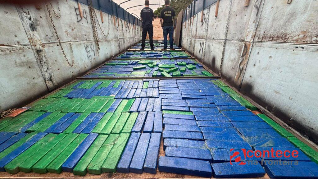 O veículo estava aparentemente vazio, levando os agentes a realizar uma fiscalizacão detalhada. Na vistoria, percebeu-se um desnível no piso da carreta, que levou à descoberta de um fundo falso onde estavam ocultadas as drogas.