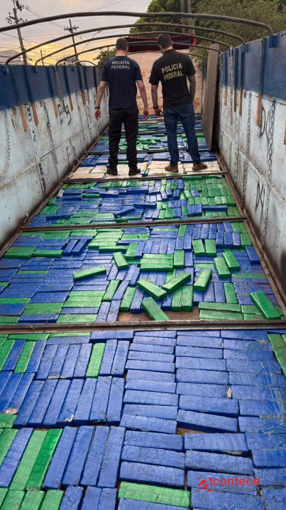 O veículo estava aparentemente vazio, levando os agentes a realizar uma fiscalizacão detalhada. Na vistoria, percebeu-se um desnível no piso da carreta, que levou à descoberta de um fundo falso onde estavam ocultadas as drogas.