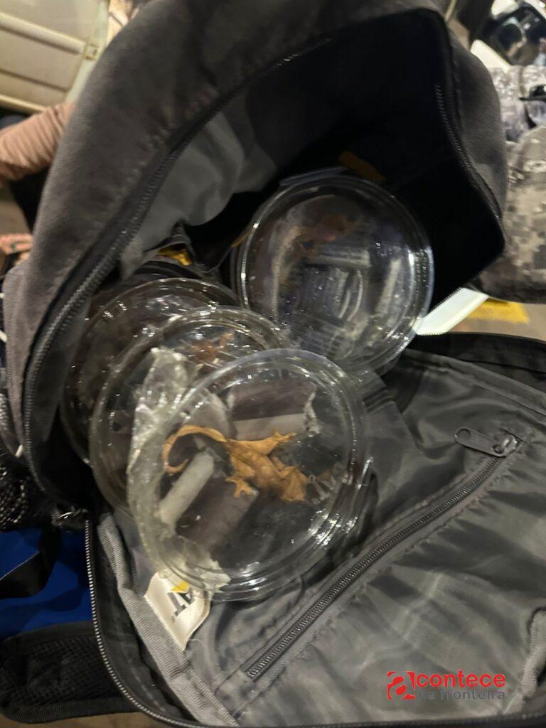 Receita Federal, Polícia Federal e Força Nacional encontram jacarés, lagartixas e cobras escondidos em mochilas