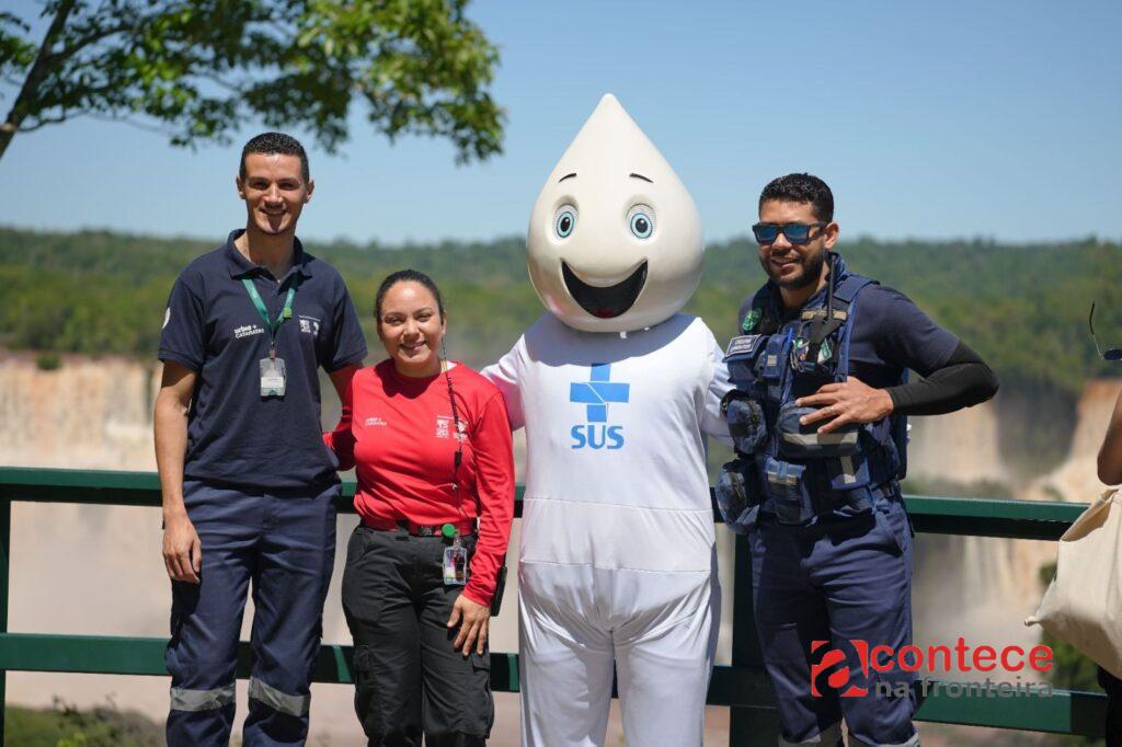 O último domingo, 19 de outubro, foi de muita diversão e conscientização no Parque Nacional do Iguaçu. Em uma ação especial do Ministério da Saúde, em parceria com a Urbia Cataratas, a mascote Zé Gotinha marcou presença nas Cataratas do Iguaçu, levando uma mensagem importante sobre a prevenção de doenças e a importância da vacinação.