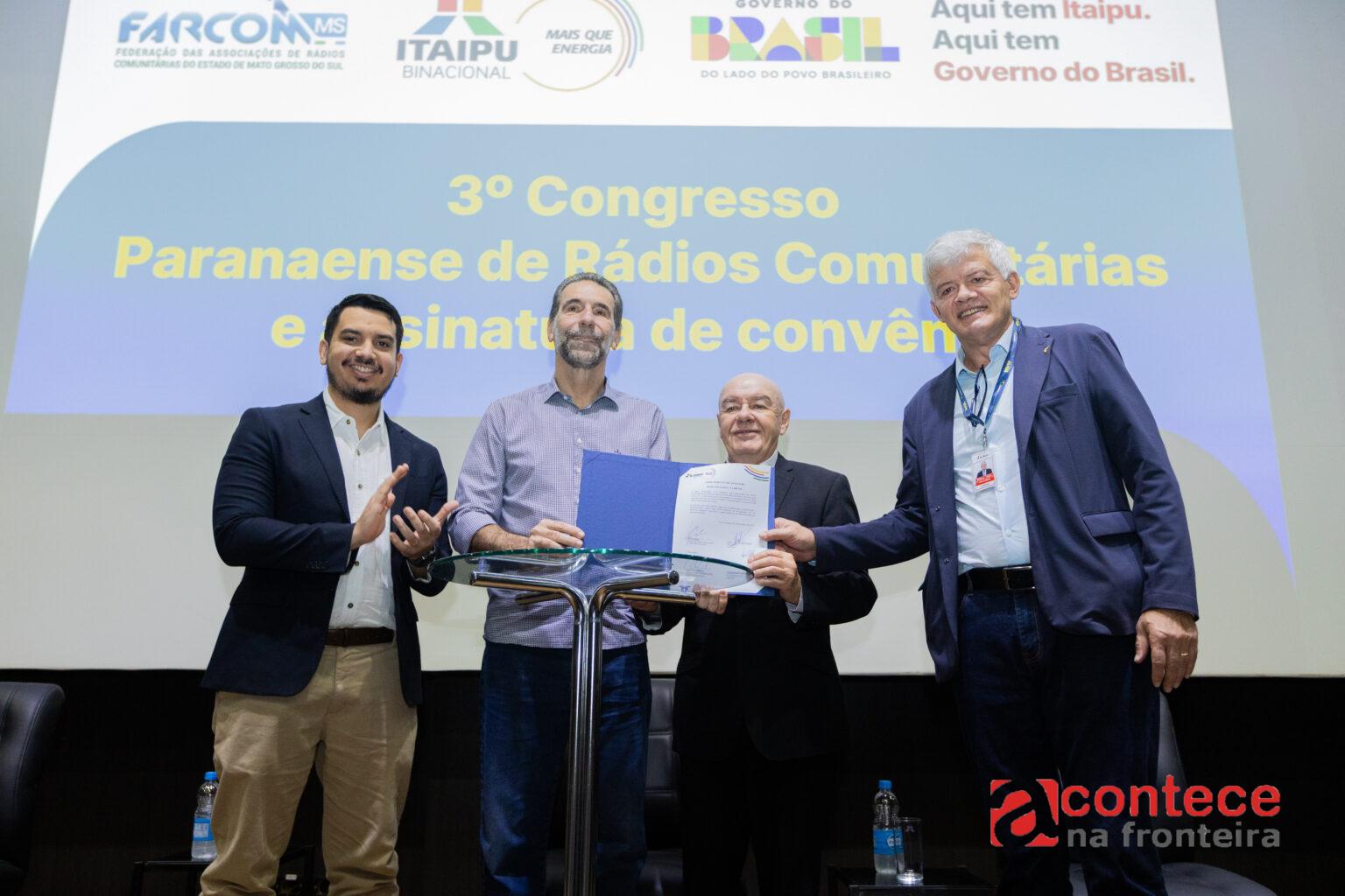 Durante o 3º Congresso Paranaense de Rádios Comunitárias, realizado no último sábado (1) em Foz do Iguaçu, a Itaipu Binacional firmou convênio com a Federação das Associações de Rádios Comunitárias do Estado do Paraná (Farcom-PR), para aquisição de equipamentos, produção e veiculação de programas sobre sustentabilidade e cursos de locução para jovens de 15 a 29 anos. O repasse da Itaipu será de R$ 4,646 milhões, com vigência do convênio até o início de 2027.