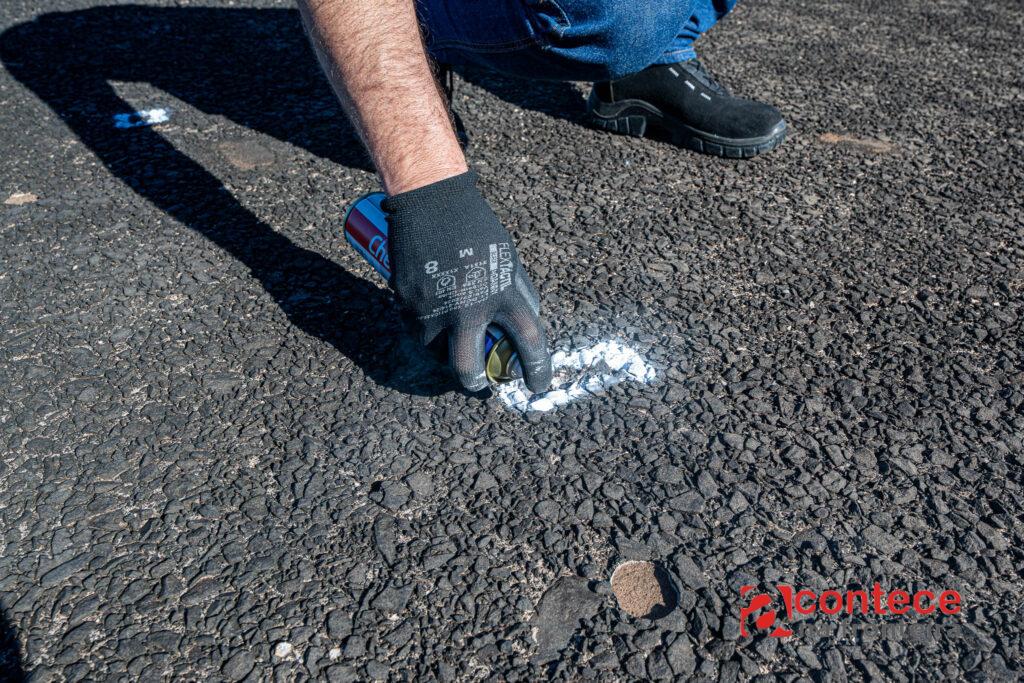 Após as recomendações da Engenharia, a Superintendência de Obras realizou um levantamento detalhado das áreas que precisavam de intervenção. Em seguida, a equipe da SMMC.DT entrou em ação: dois profissionais da área percorreram a imensa calha para identificar e registrar os pontos que necessitavam de reparo. A cada ponto de erosão, pequeno ou grande, encontrado, eles marcam com uma tinta spray, uma operação feita mais de 3.500 vezes.