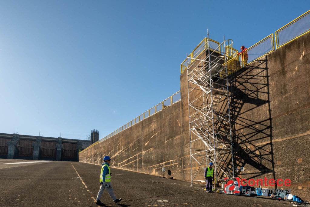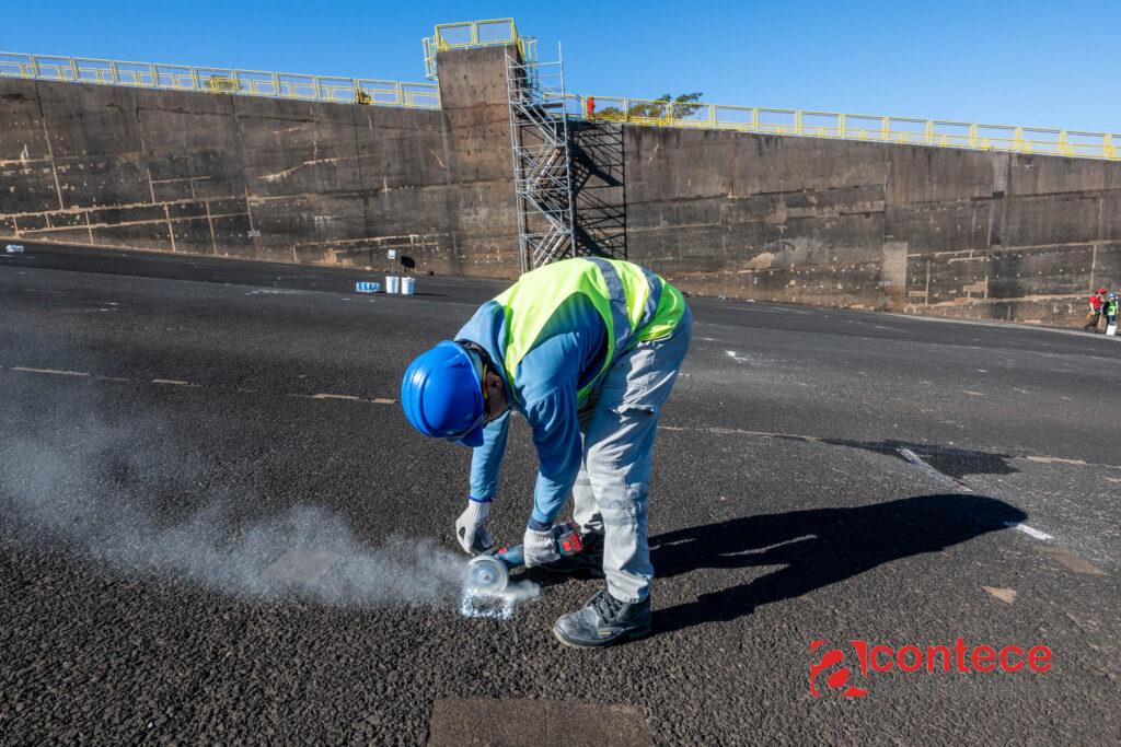 Segundo João Bernardino, esse material precisa ser trabalhado em temperaturas inferiores a 35º Celsius, por isso a escolha dos meses com temperaturas mais baixas para fazer a atividade. No final, foram reparados 95 m² nas lajes e 10 m² nos muros da calha esquerda. Em um ponto especial, na rampa final do vertedouro, chamado de “trampolim”, também foram feitos reparos após ser drenada a água que se acumula ali.
