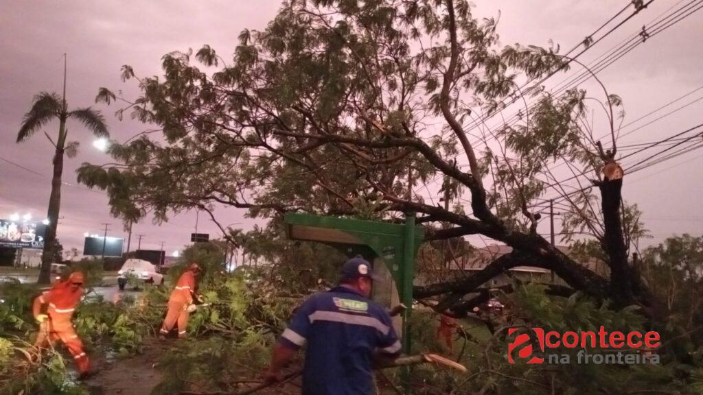 - Houve queda de cerca de 12 árvores/galhos que obstruíram parcialmente as vias públicas, principalmente na região Sul.
