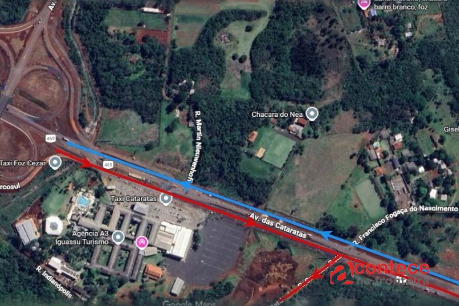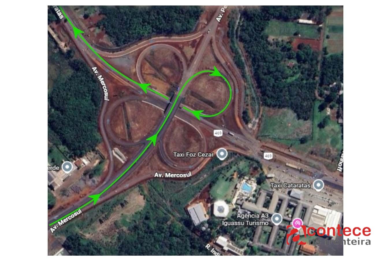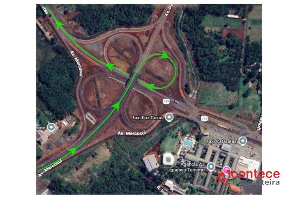 E condutores seguindo do centro rumo ao Aeroporto de Foz do Iguaçu, após passar abaixo do viaduto, deverão acessar a nova via marginal direita, permitindo a continuidade da duplicação da pista central da BR-469. Somente moradores do bairro Carimã e usuários que precisam acessá-lo poderão utilizar um acesso à Rua Carmen Gatti, em sentido único, conforme orientação do FozTrans.