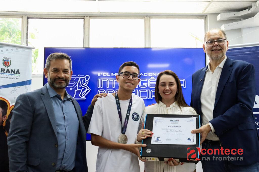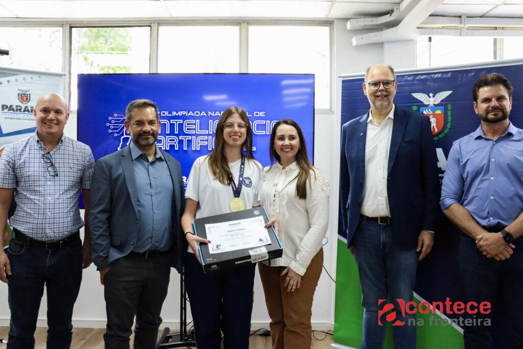 Alunos do Paraná conquistaram oito medalhas de Ouro na Olimpíada Nacional de Inteligência Artificial (ONIA). Somadas às 21 de prata e 36 de bronze, foram 65 no total, além de 18 menções honrosas, segundo a listagem final da organização da competição. Medalhas e prêmios foram entregues nesta segunda-feira (8), em cerimônia promovida pelo Governo do Estado, por meio das secretarias da Inovação e Inteligência Artificial (Seia) e da Educação (Seed).