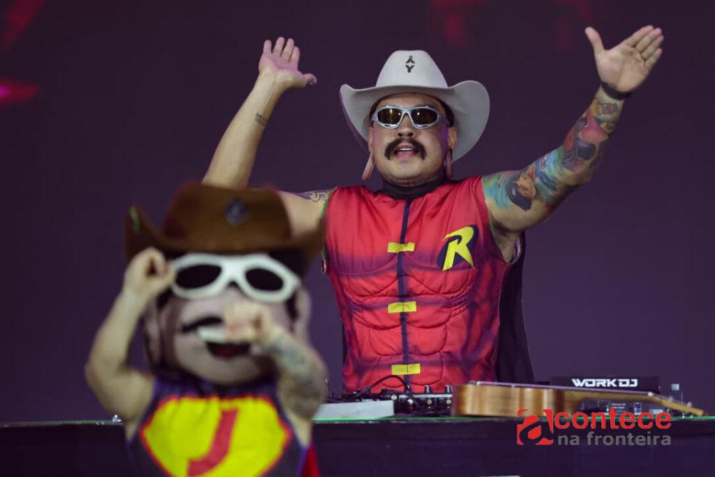 O DJ goiano abriu a noite e trouxe uma mistura que caiu na graça da plateia: sucessos do sertanejo remixados no estilo eletrofunk, animados por um grupo de dançarinos muito peculiar. Ao estilo do fenômeno Carreta Furacão, que faz sucesso na internet, a equipe do “Cowboy do Eletrofunk” é formada por duas dançarinas e por bonecos dos personagens Fofão e Emília do Sítio do Pica Pau Amarelo e um anão que é caracterizado como a “miniatura” do próprio Jiraya Uai.