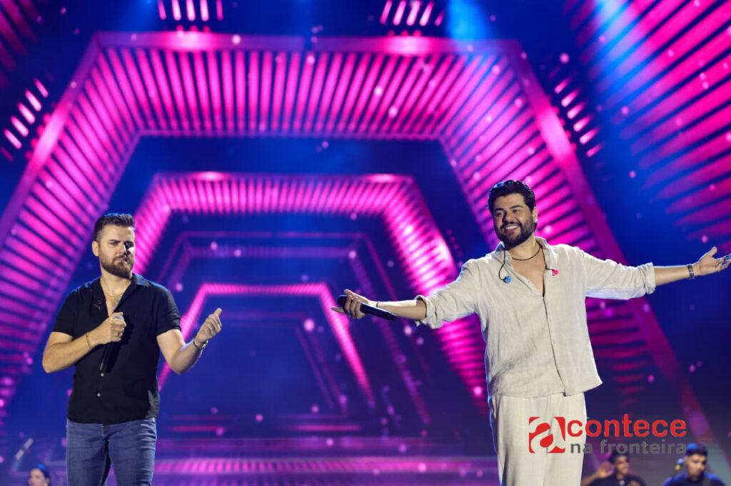 Quem também subiu ao palco para uma participação especial foi a dupla Bruno Cesar & Rodrigo. Apadrinhados por Zé Neto & Cristiano, os músicos assinam composições gravadas por outros grandes nomes do sertanejo, como Gusttavo Lima e Marília Mendonça.