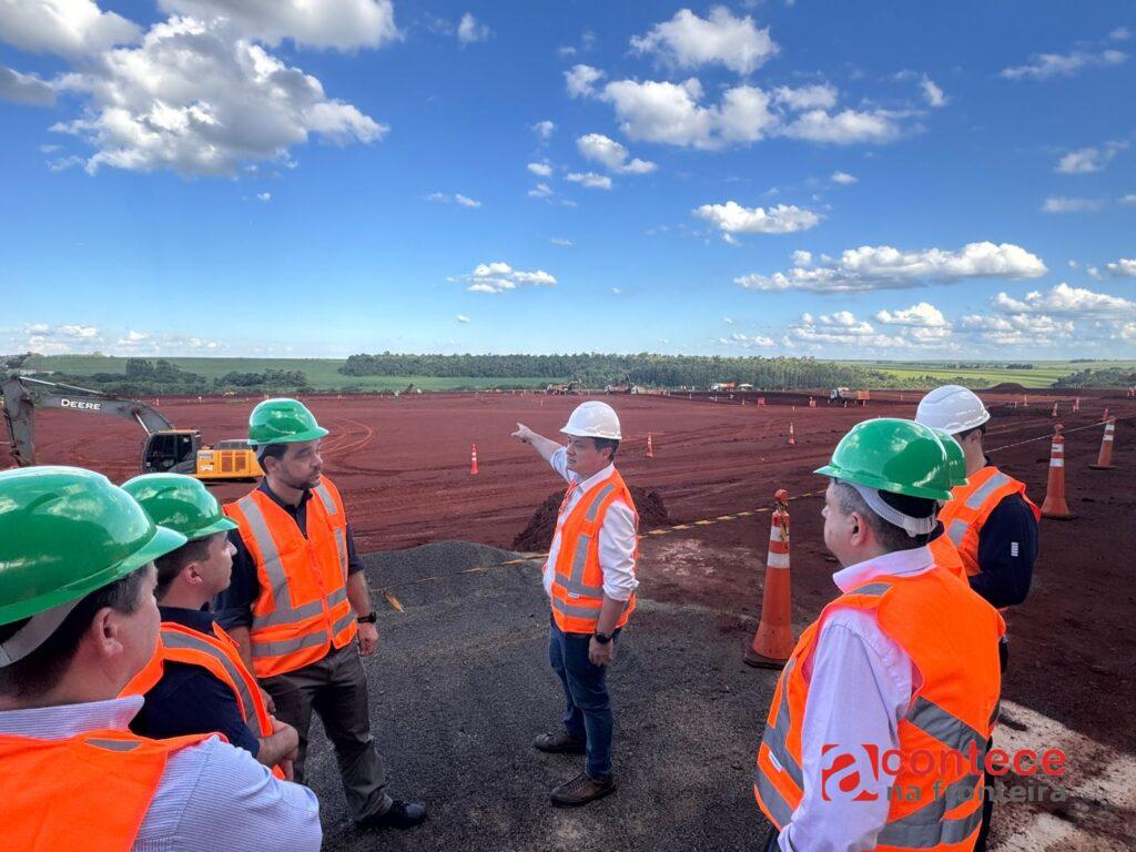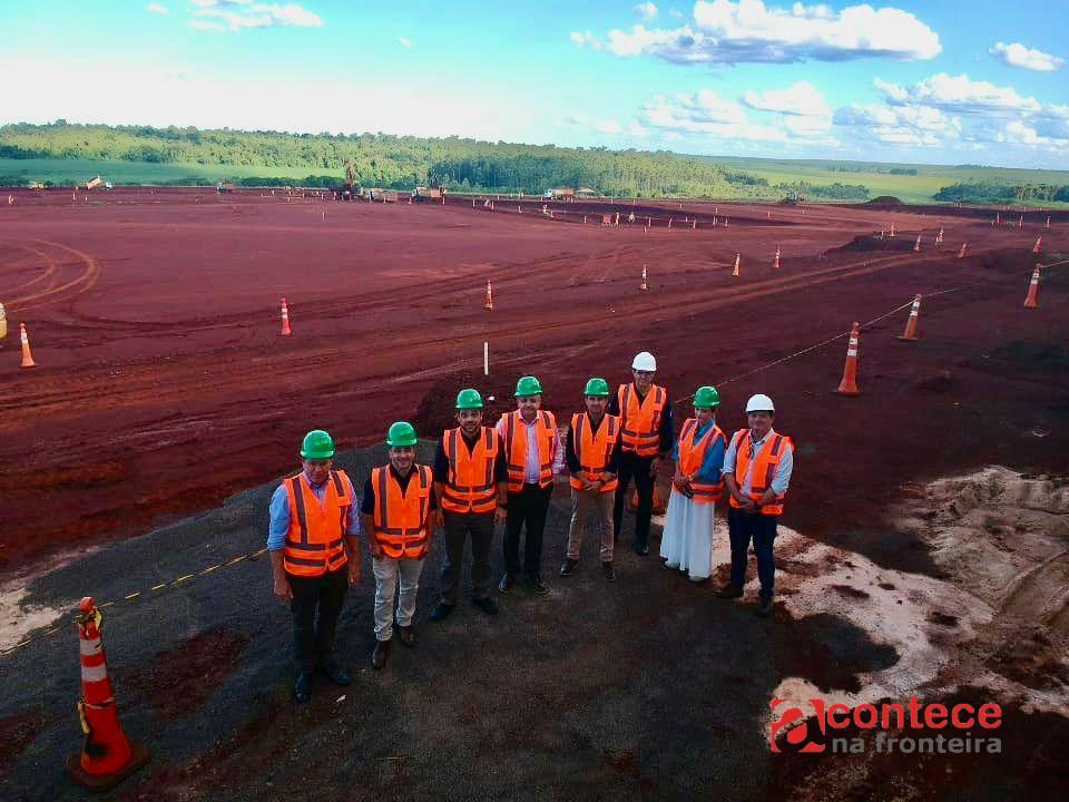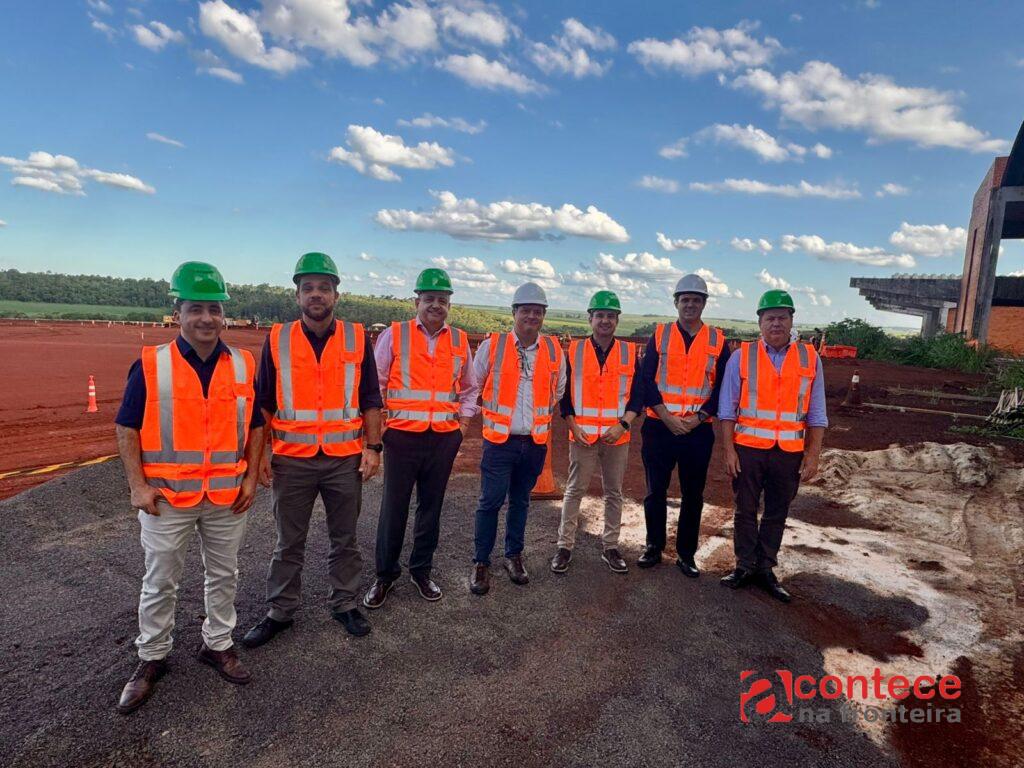 O presidente da Multilog, uma das maiores operadoras de logística integrada do Brasil e responsável pela administração do Porto Seco de Foz do Iguaçu, Djalma Vilela, ao lado de outros executivos da empresa, visitou nesta terça-feira (13) as obras da nova unidade alfandegada.