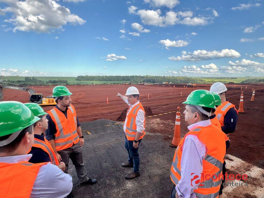 Após vistoriar a área de 550 mil metros quadrados, Vilela anunciou que a inauguração do Novo Porto Seco está prevista para o dia 10 de dezembro de 2026. “As obras estão dentro do cronograma. Estamos em pleno andamento da terraplanagem e pavimentação. Em fevereiro iniciaremos a construção dos prédios”, explicou.