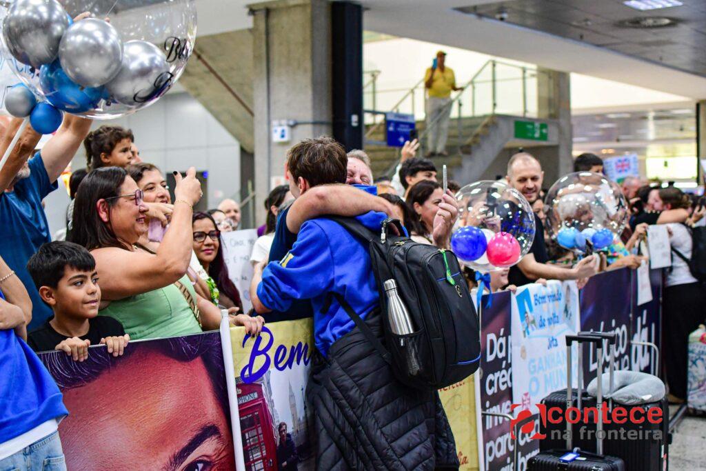 O Aeroporto Internacional Afonso Pena, em Curitiba, foi palco de reencontros marcados por emoção, na manhã deste domingo (18), com o desembarque dos 54 estudantes paranaenses que retornaram do Reino Unido pelo programa Ganhando o Mundo.