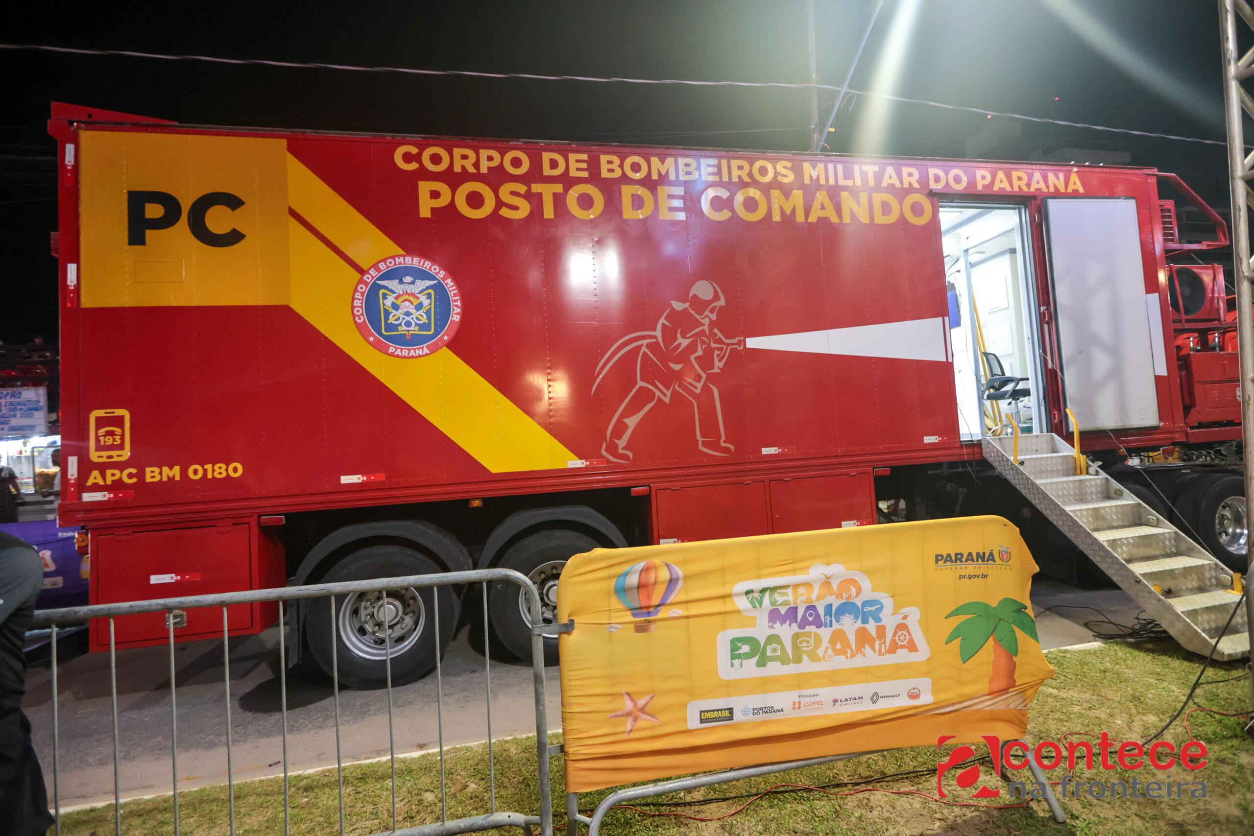Durante os shows do Verão Maior Paraná no Litoral do Estado, o Corpo de Bombeiros Militar do Paraná (CBMPR) atua com uma estrutura especial de prevenção e resposta, coordenada a partir do Posto de Comando Móvel, instalado ao lado do palco principal.