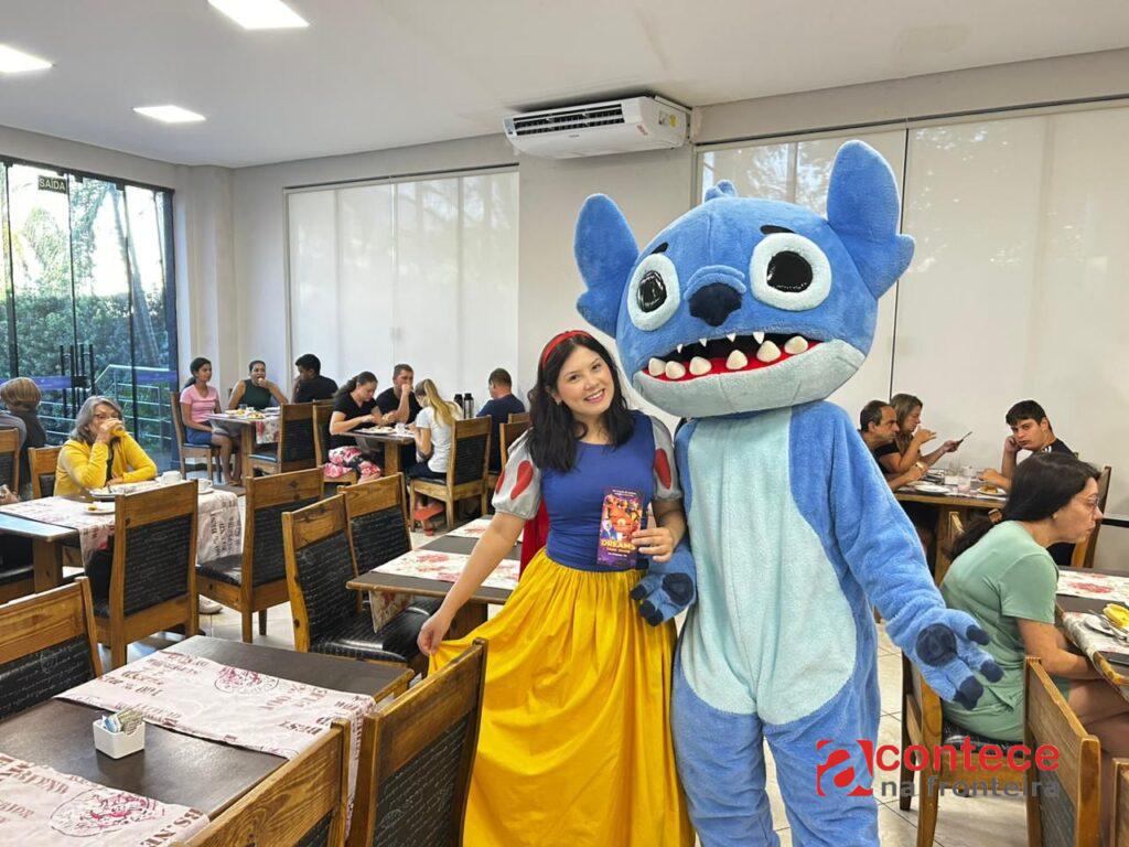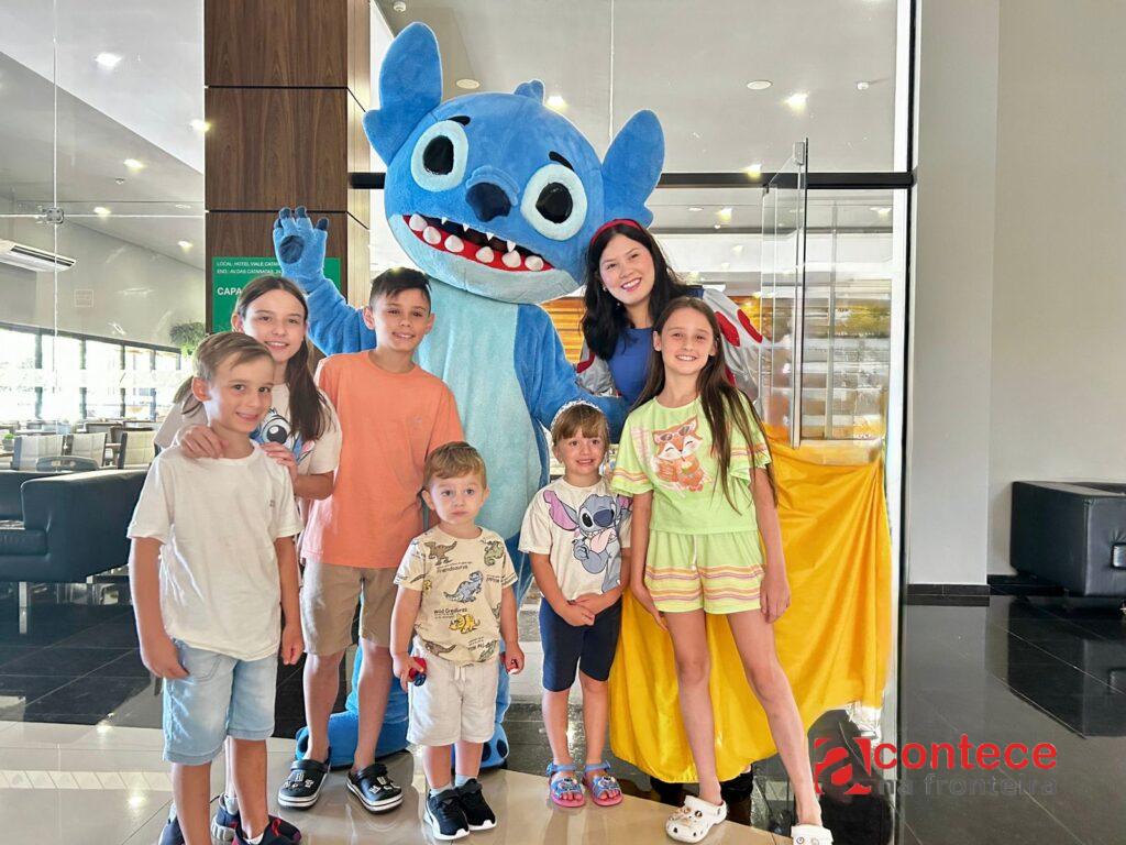 A pequena Maya Oliveira, de oito anos, veio de São Paulo para passar as férias com a família na Terra das Cataratas e, logo que desembarcou, foi surpreendida ao encontrar o Stitch, seu personagem favorito. “Já gostei desta cidade. Será que tem mais personagens por aí?”, comentou a menina.