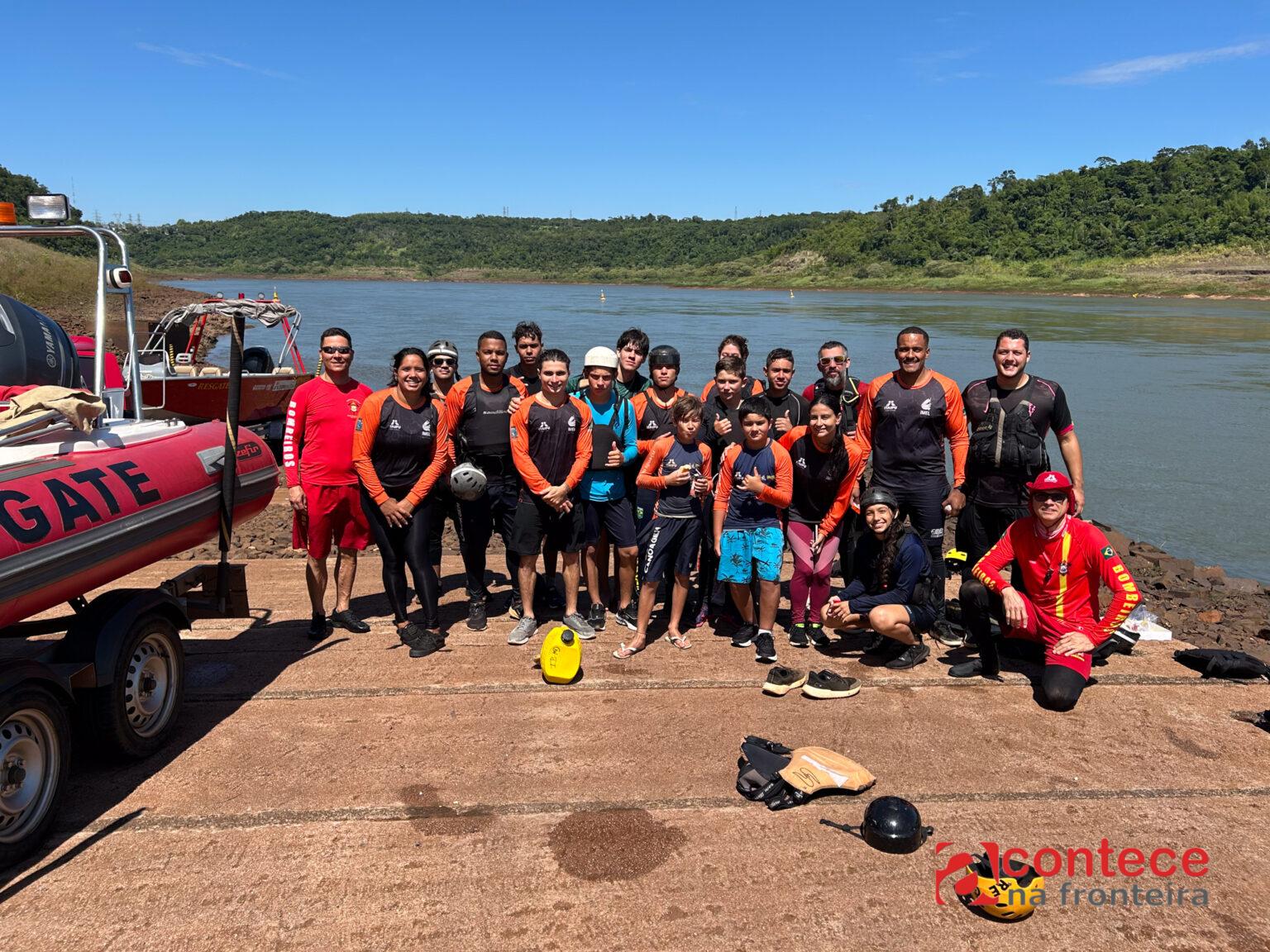 Na última semana de janeiro, bombeiros da Itaipu Binacional levaram 12 instrutores e monitores e dez jovens do Projeto Meninos do Lago para o meio das águas do Rio Paraná, próximo à Foz do rio Bela Vista, para ministrar um treinamento de deslocamento e sobrevivência em águas volumosas.