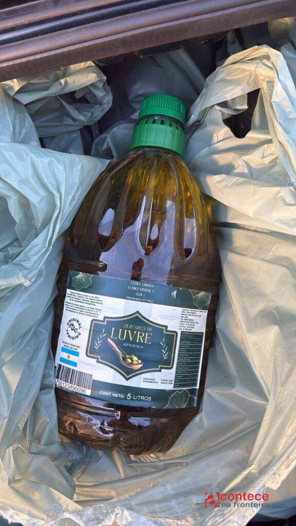 Entre os produtos apreendidos estavam vários galões de azeite argentino, com capacidade de cinco litros. O Ministério da Agricultura e Pecuária (MAPA) recomenda a não ingestão desse tipo de produto, uma vez que diversas marcas são proibidas pela fiscalização sanitária por possuírem origem de fabricação clandestina.