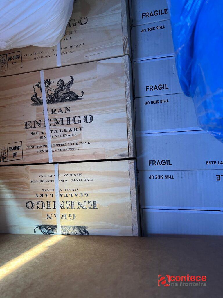 Durante a inspeção, foram localizadas aproximadamente 1.500 garrafas de vinho, além de brinquedos, eletrônicos e azeites impróprios para consumo, totalizando cerca de R$ 100 mil em mercadorias.