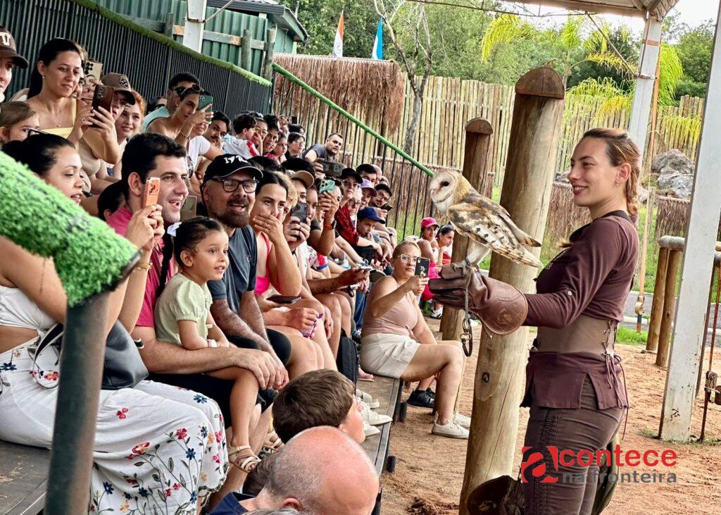 Após acompanharem o voo de gaviões, corujas, urubus e falcões, as famílias visitaram a Fazendinha, a Floresta dos Primatas e fizeram o passeio de pedalinho no Lago das Capivaras. A mesma cena se repetiu na apresentação da tarde, às 16h, e seguiu ao longo de todo o domingo.